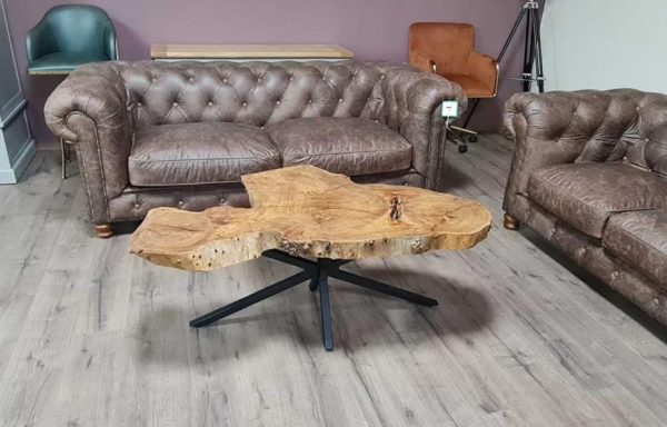 Масивна холна масичка от дърво и метални крака ръчна изработка