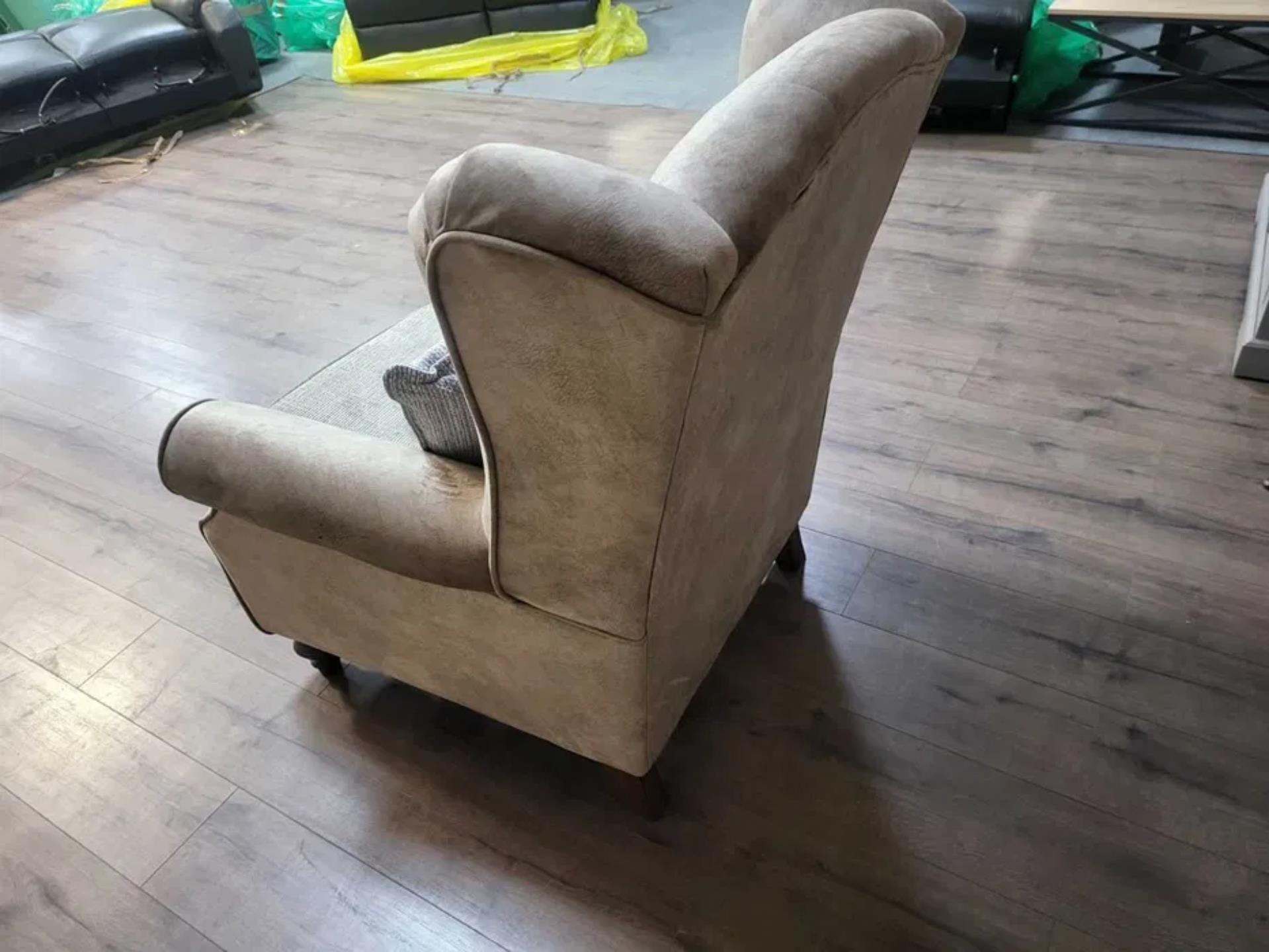Този ретро стил фотьойл с бежов плат ще добави уютен акцент към всеки интериор. Подходящ е за дома или офиса. Изработен от качествени материали, той ще ви служи дълго време.