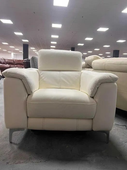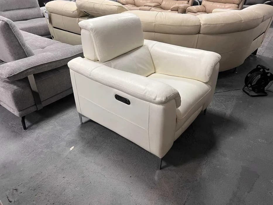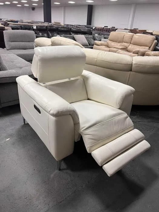 Бял кожен фотьойл с електрически релаксиращ механизъм на краката и облегалките–100 % естествена кожа.