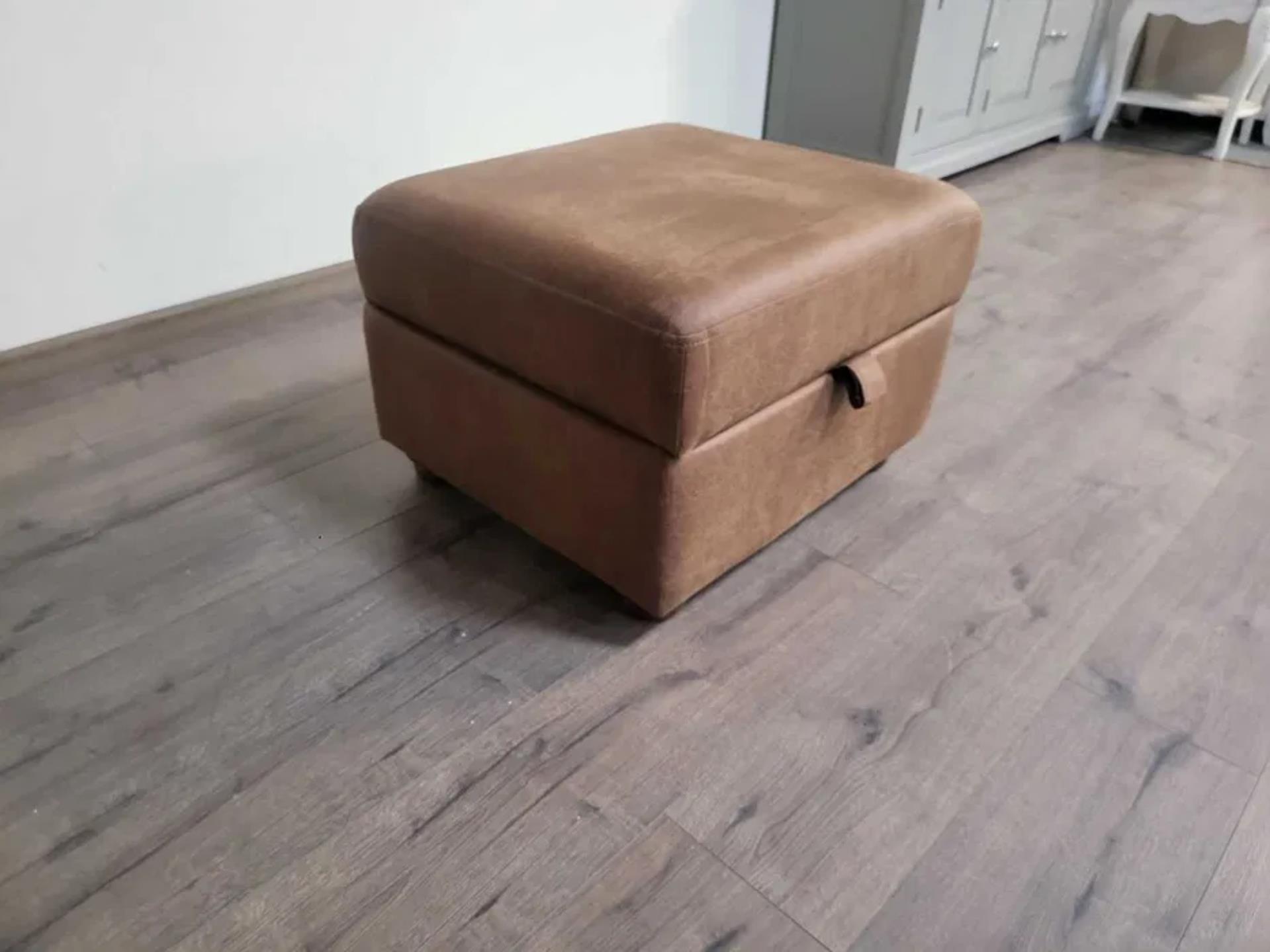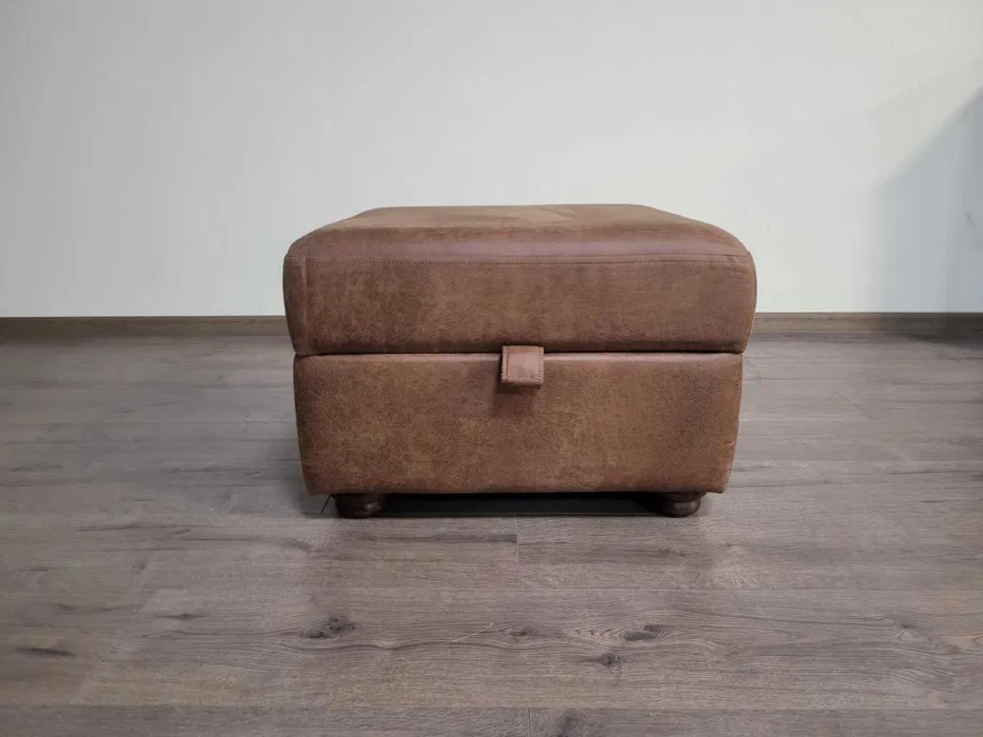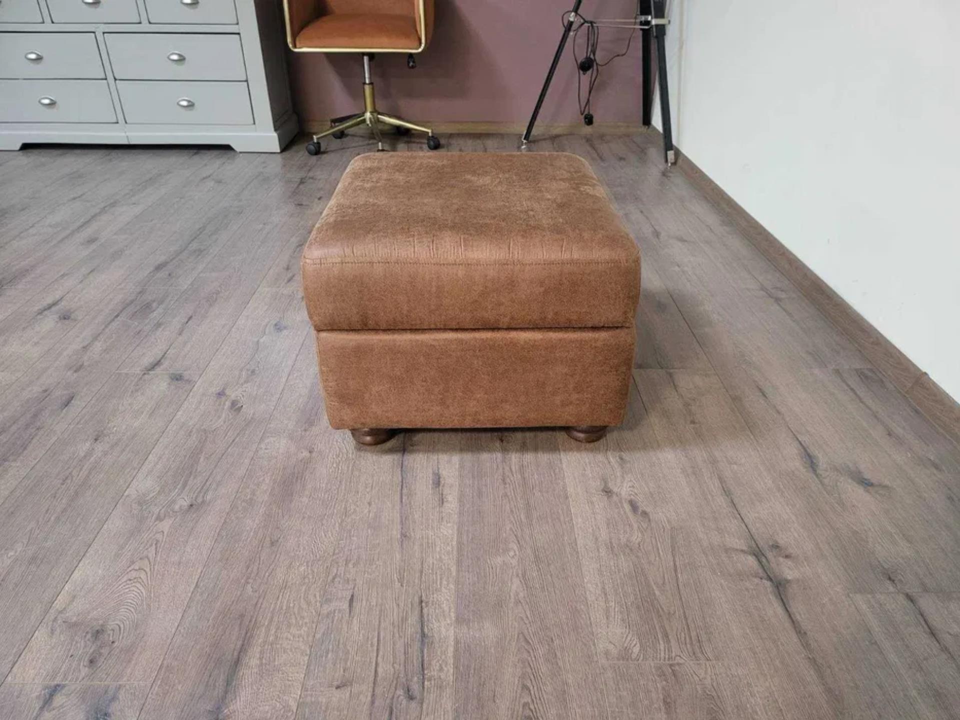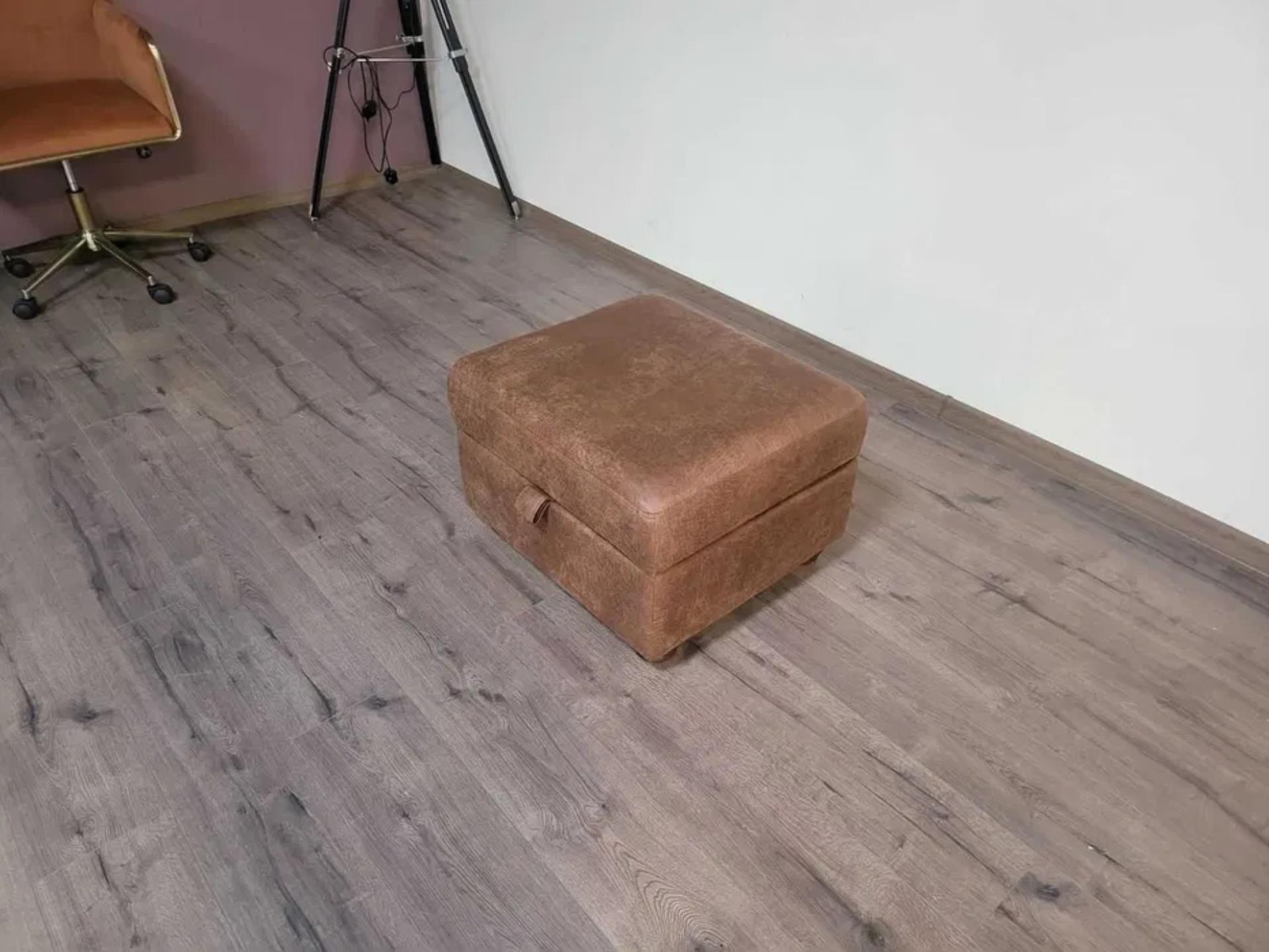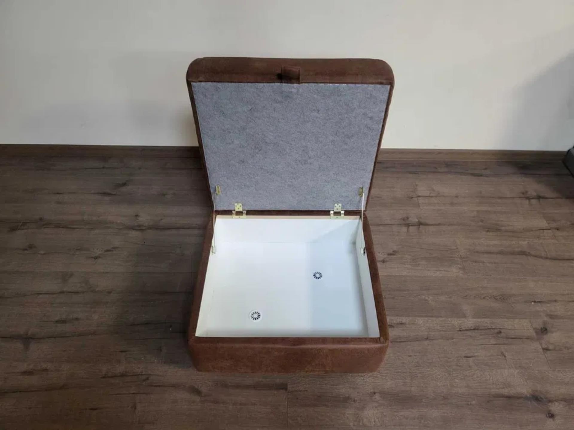 Кафява табуретка от плат с функция ракла. Подходящ за допълване на интериора на всекидневна или спалня.
