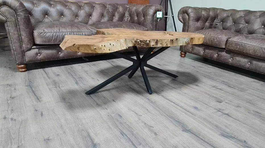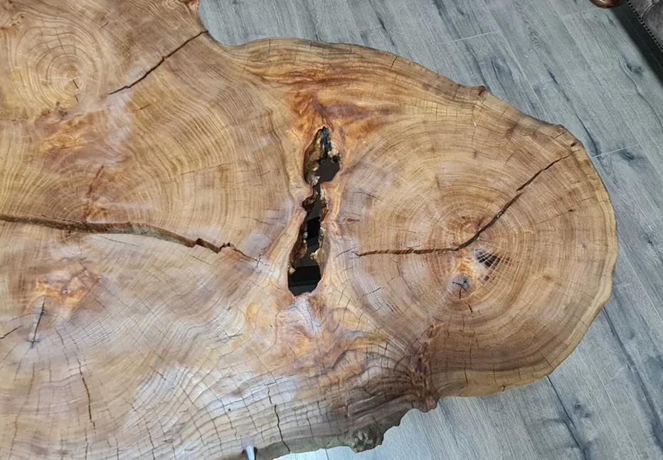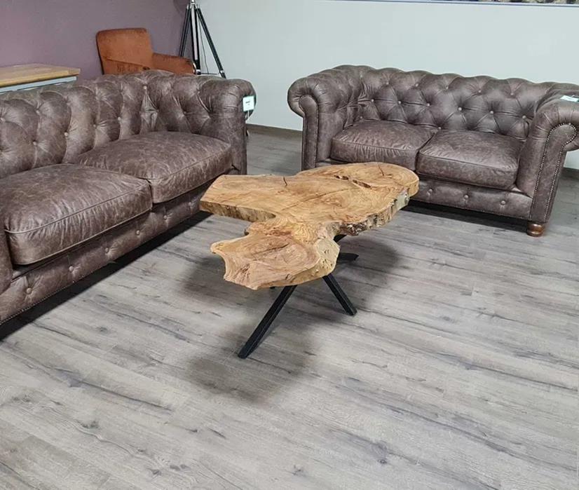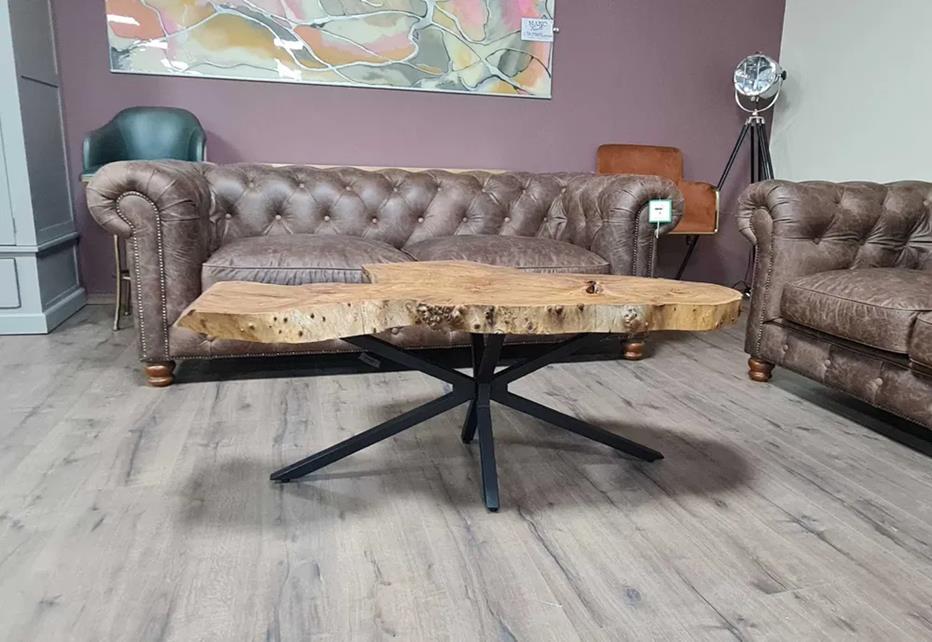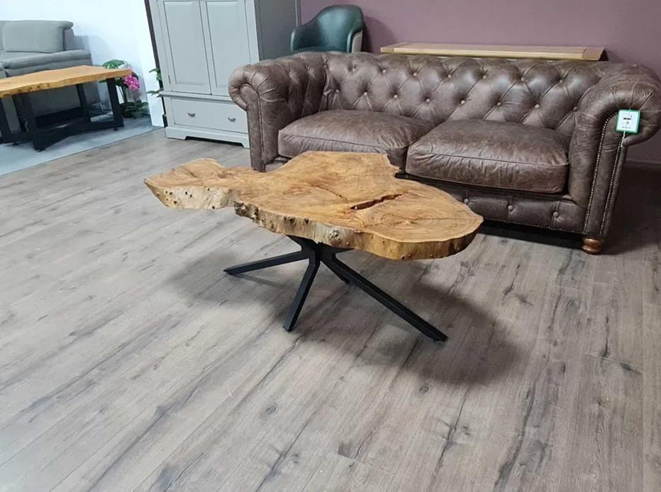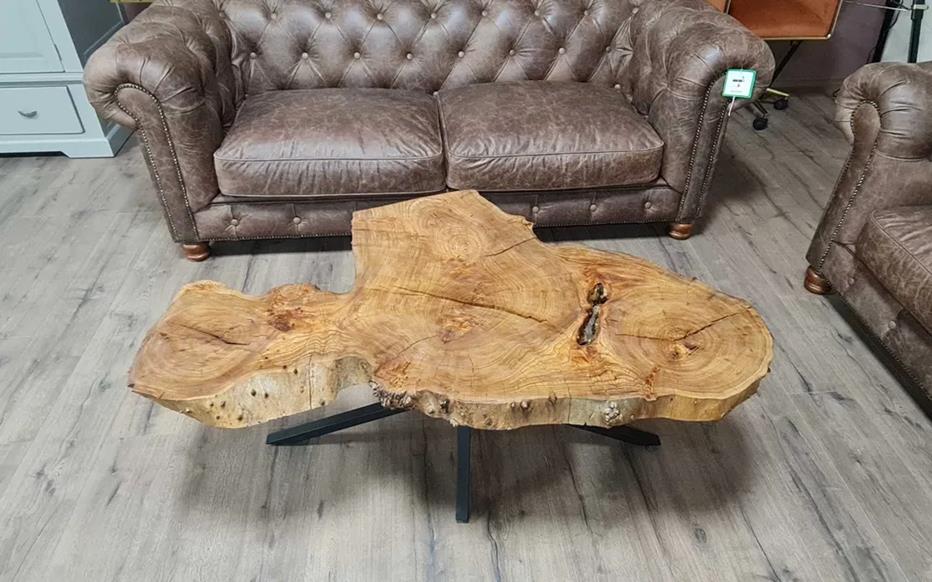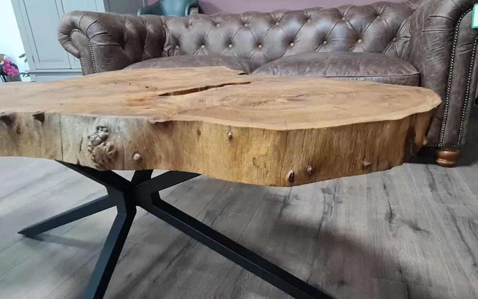 Масивна холна масичка от дърво и метални крака ръчна изработка