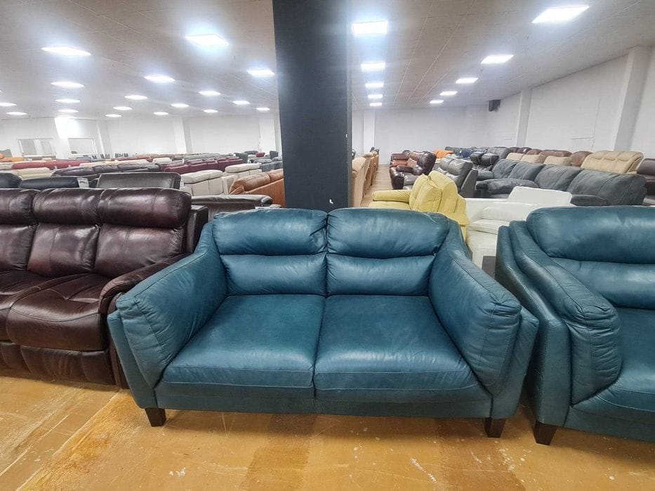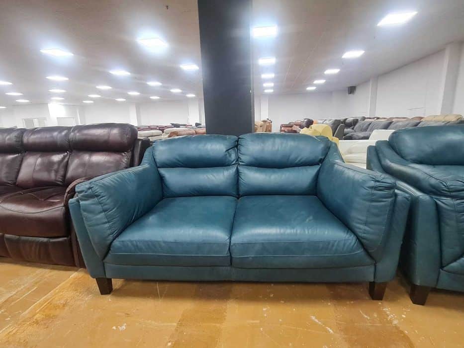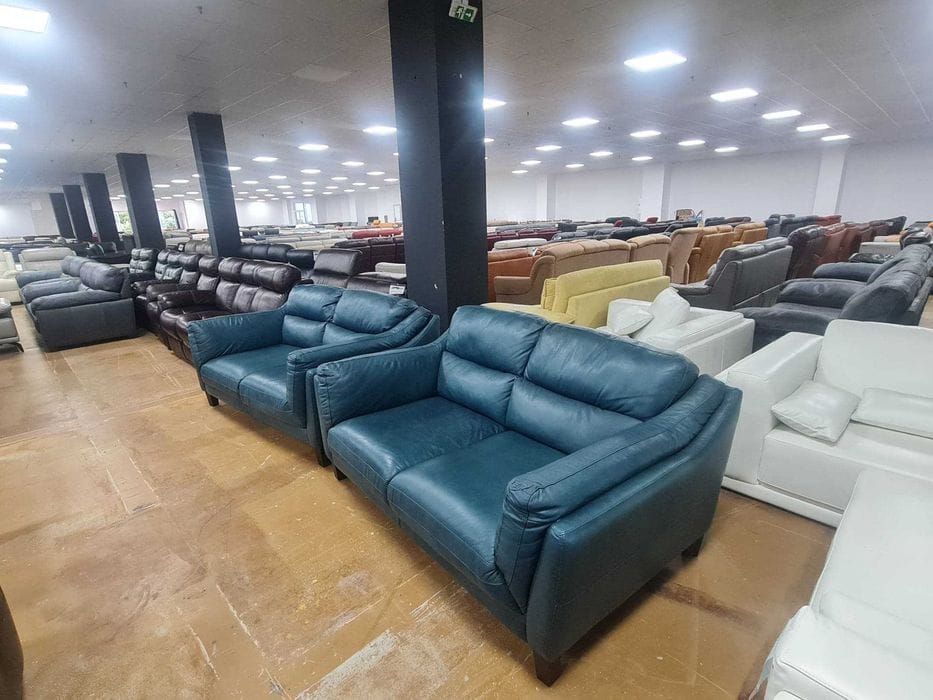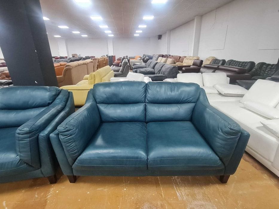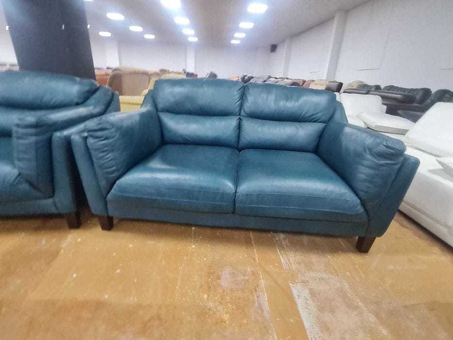 Петролено сини кожени дивани две двойки – естествена кожа
