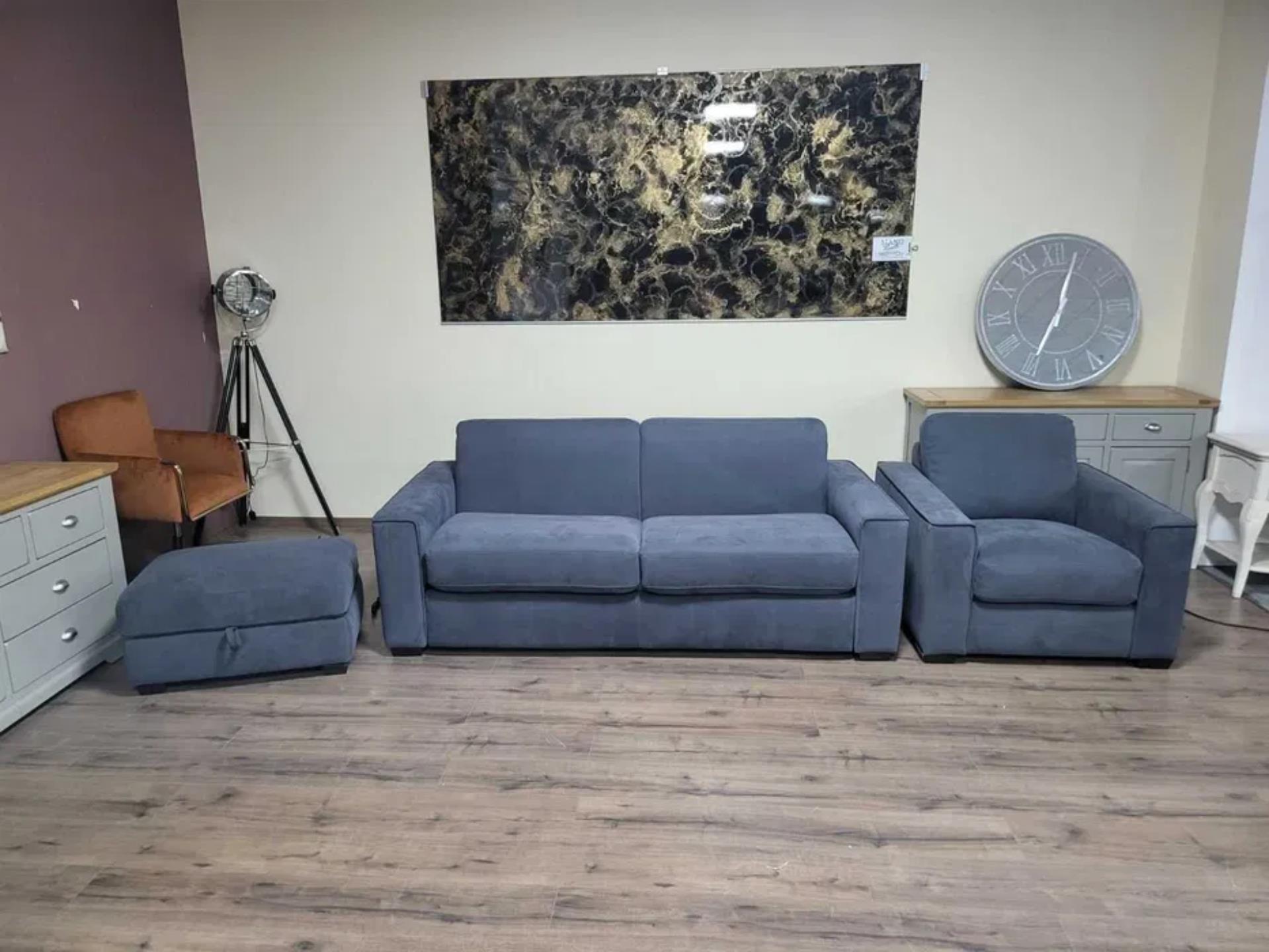 Сив комплект от плат диван тройка с функция сън, фотьойл и табуретка