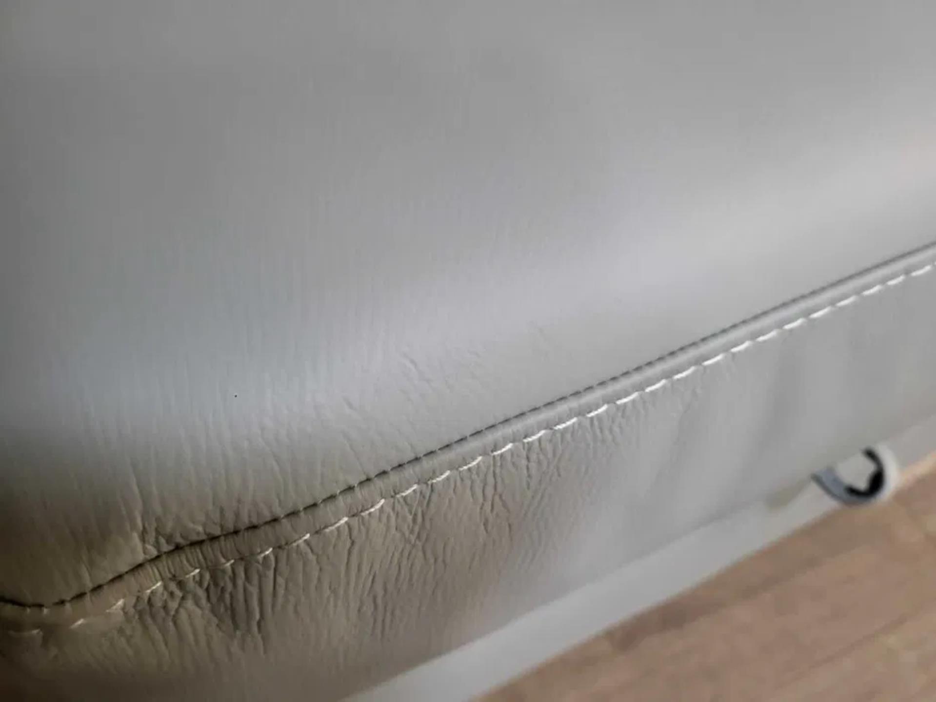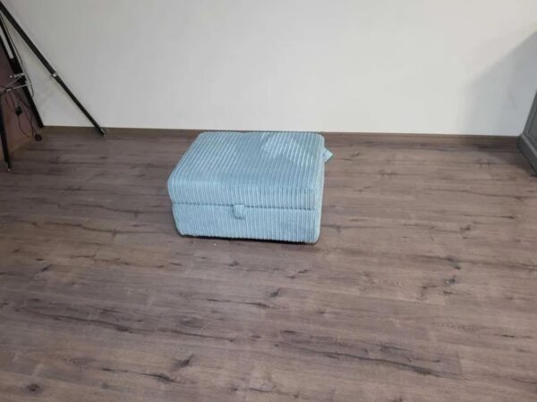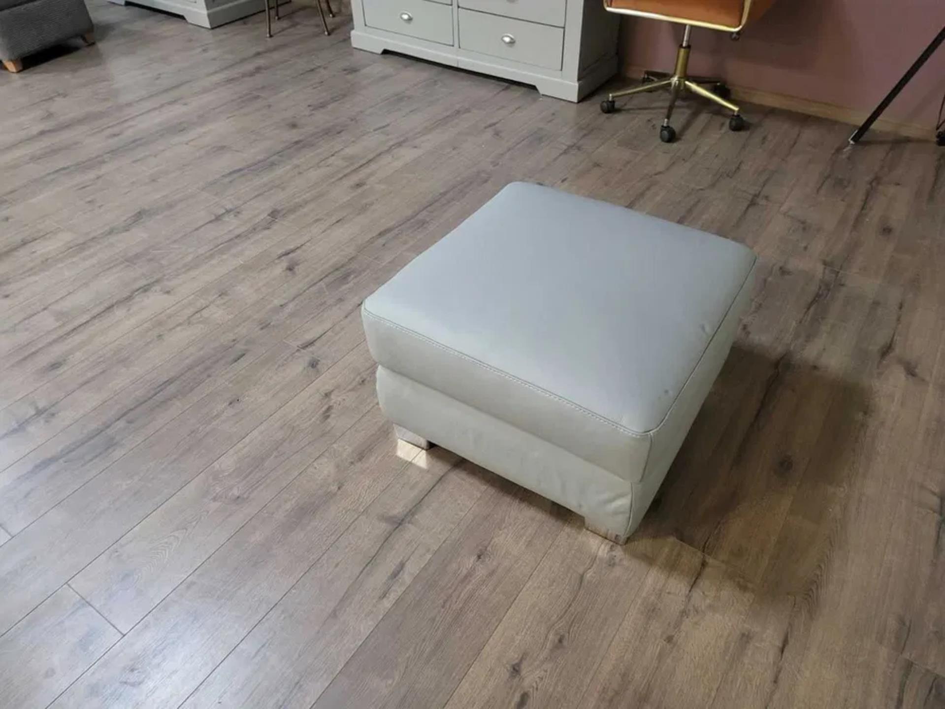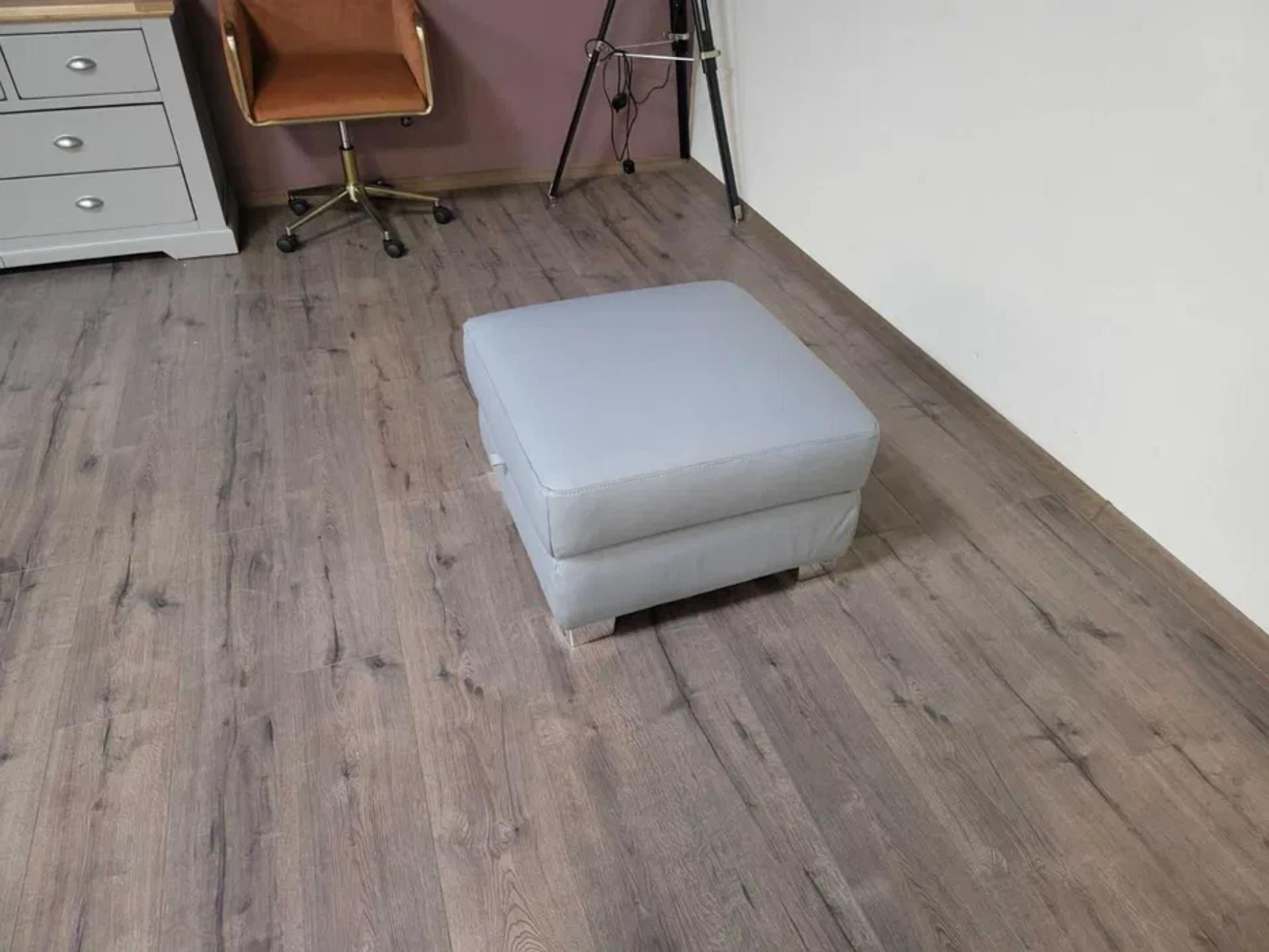 Практична сива кожена табуретка с вътрешно пространство за съхранение. Подходящ за дома или офиса, може да се използва като допълнителен седящ елемент или за съхранение на дребни предмети.