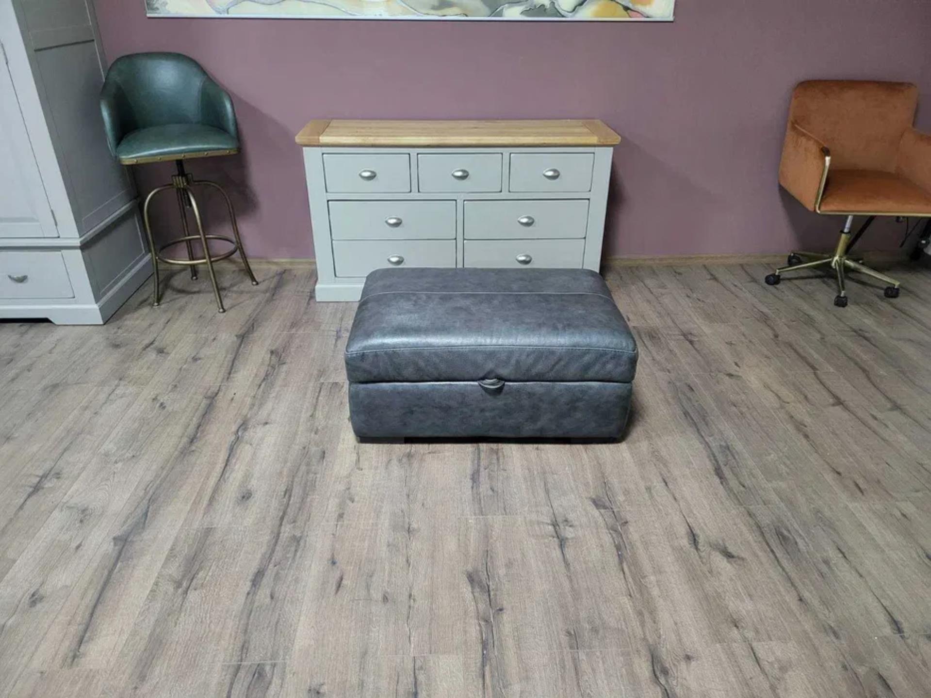 Сива кожена табуретка с функция ракла.