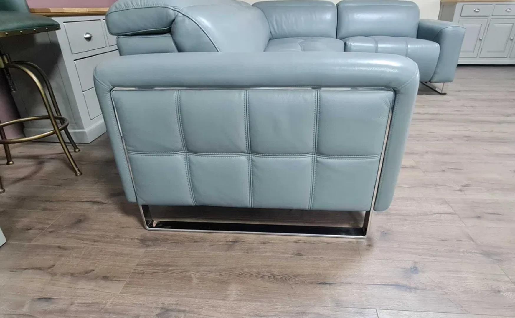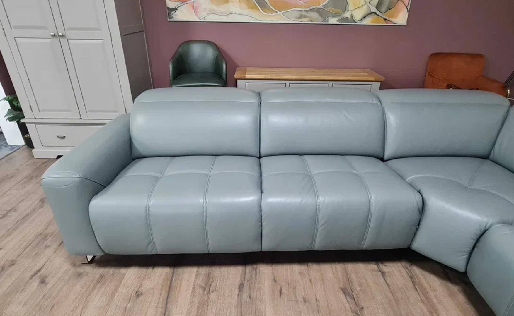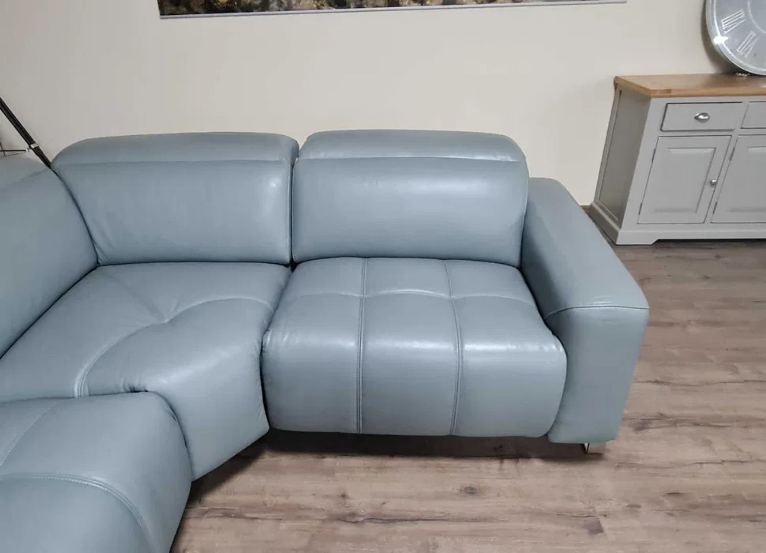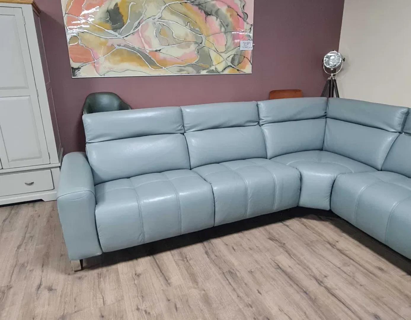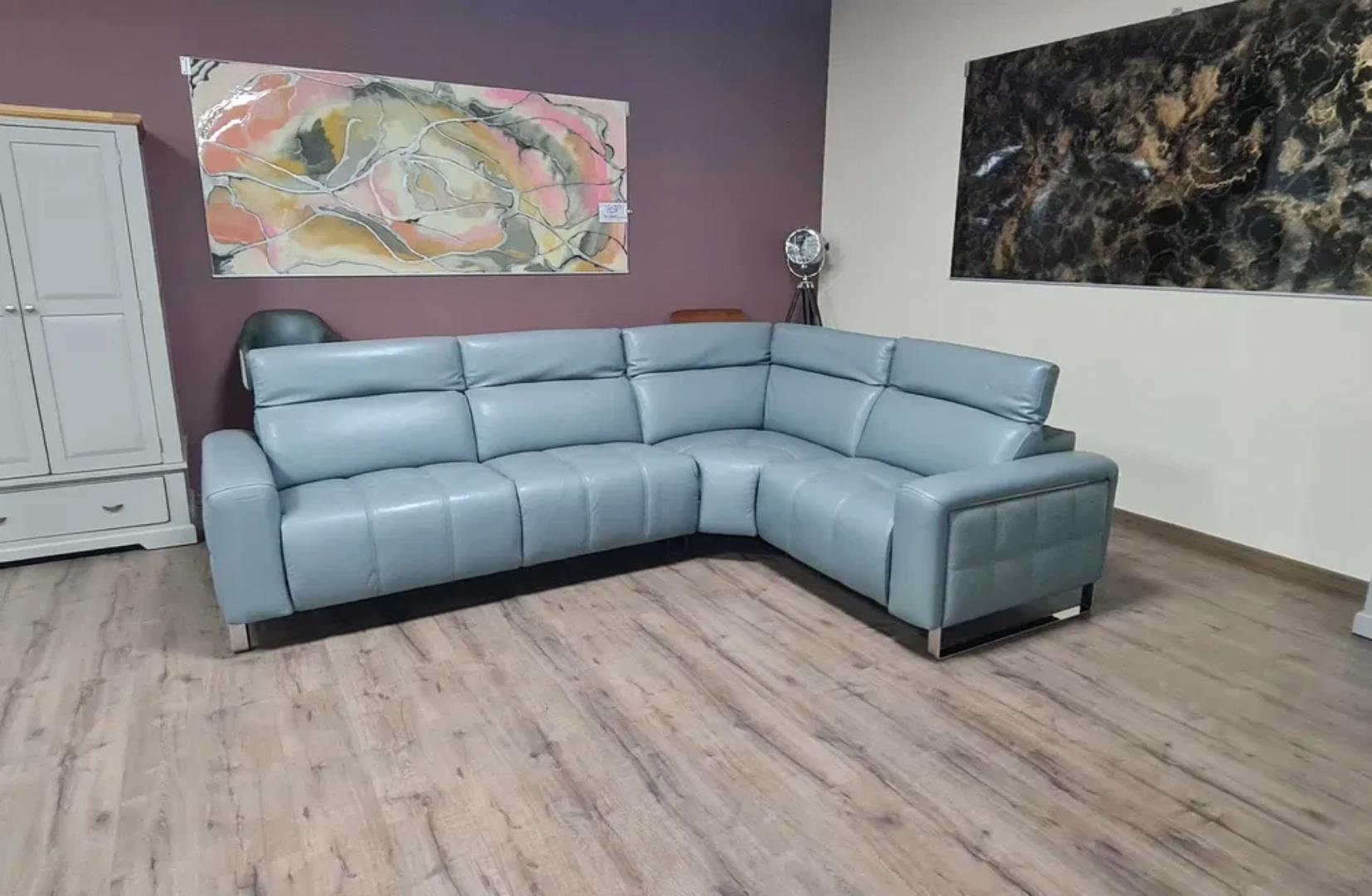 Дизайнерски Сиво – син кожен ъглов диван „Marvella“ с подвижни облегалки.