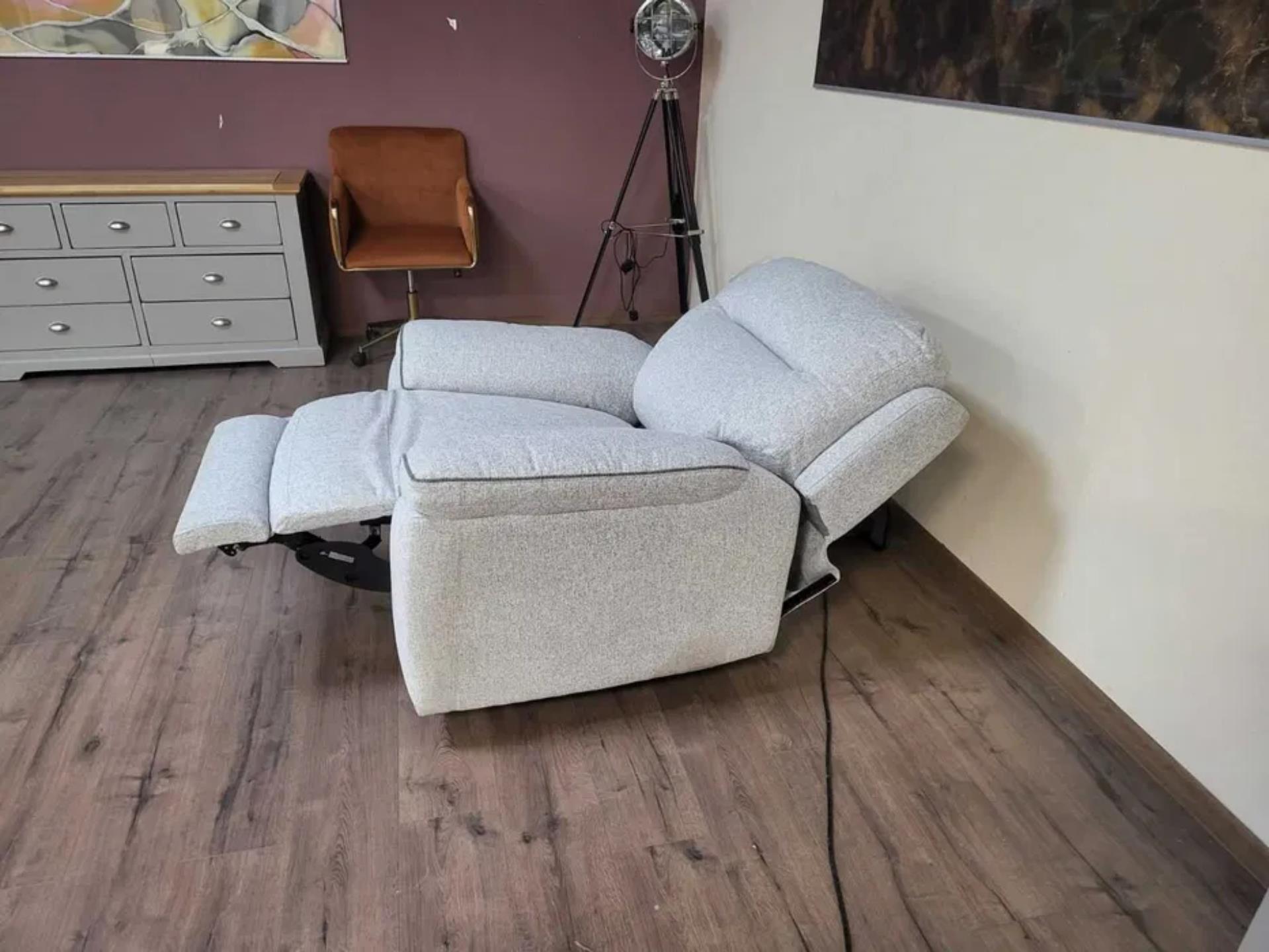 Светло сив фотьойл от плат с електрически релаксиращ механизъм за краката.