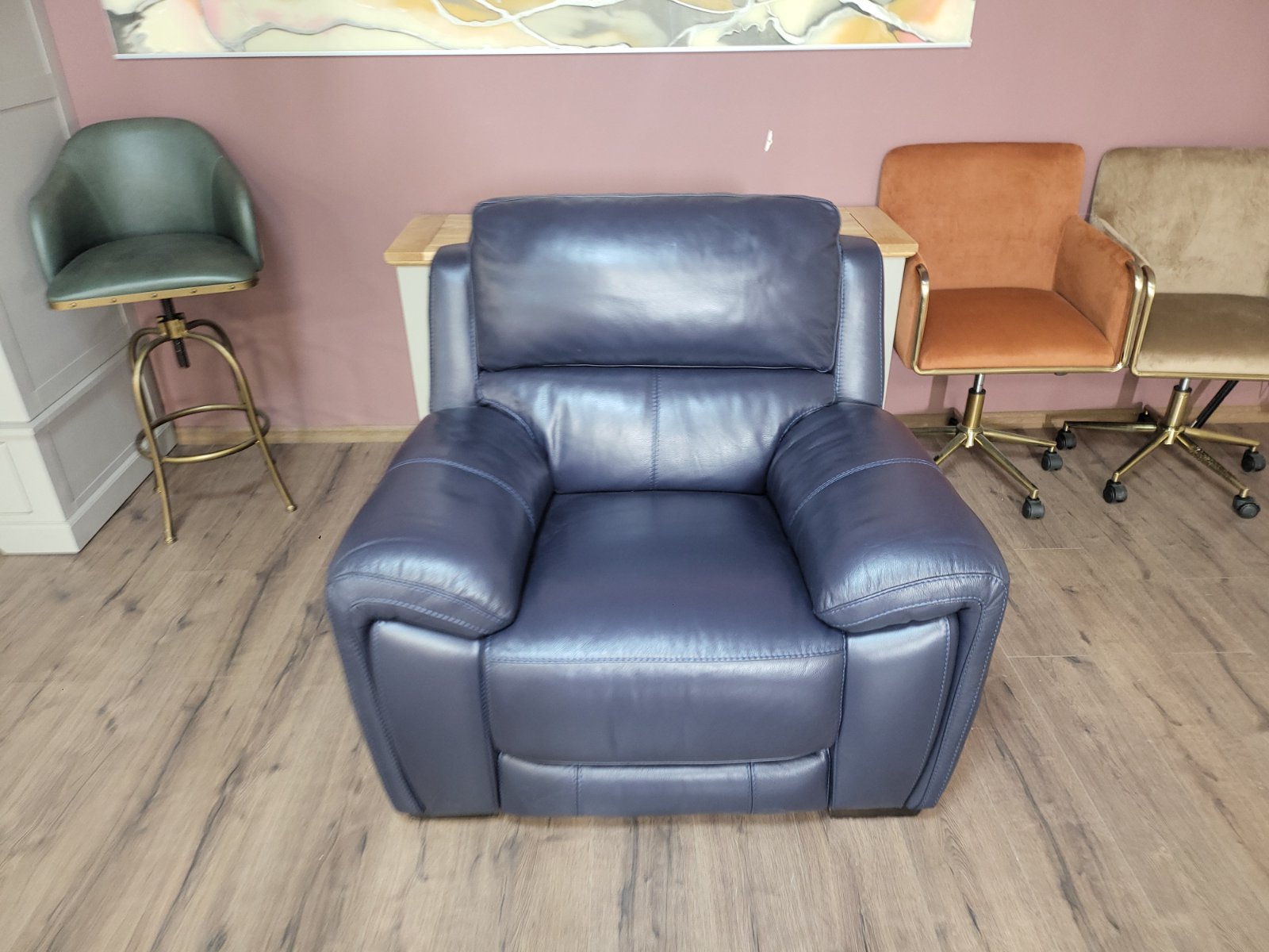 Тъмно син кожен фотойл