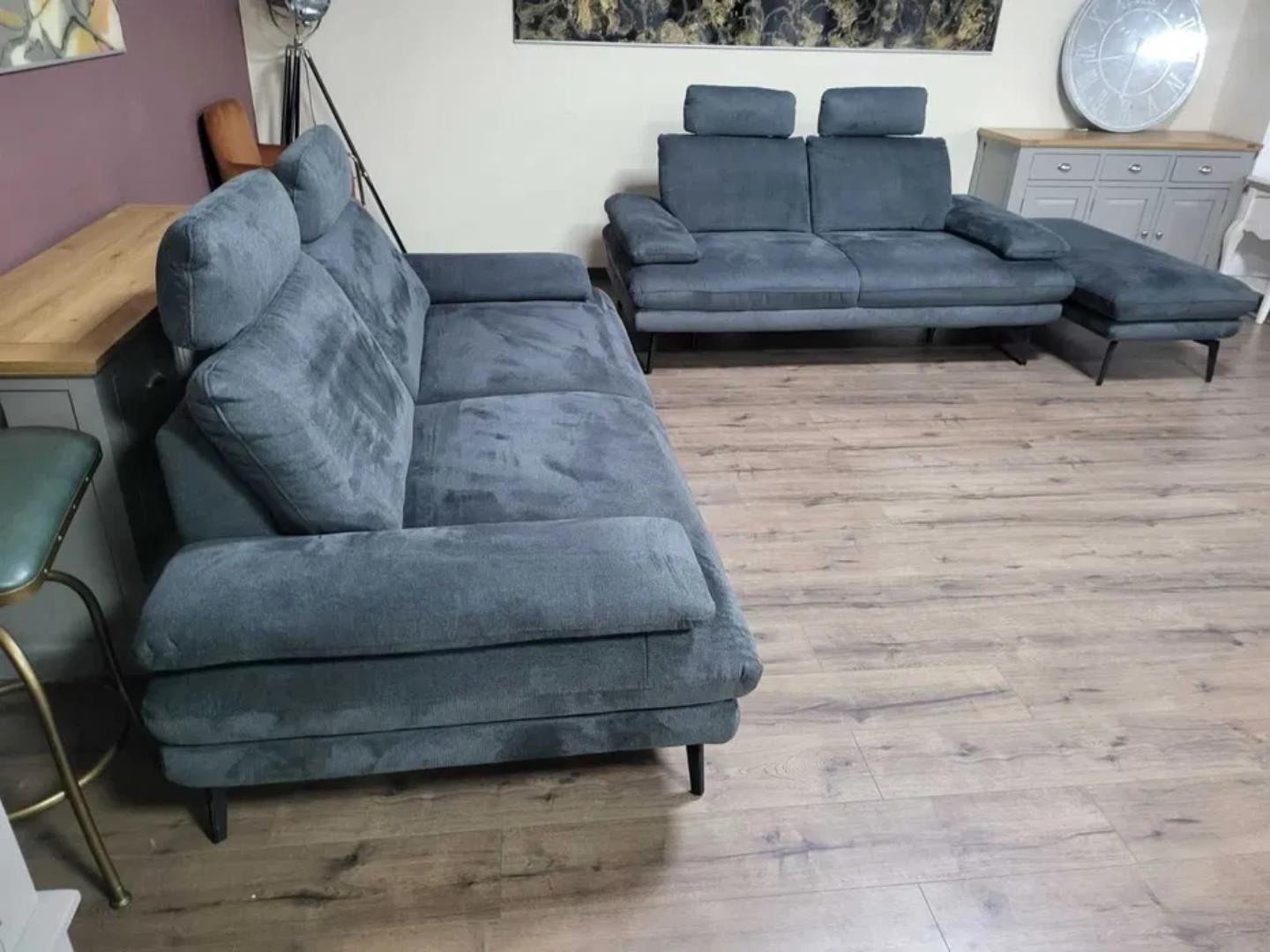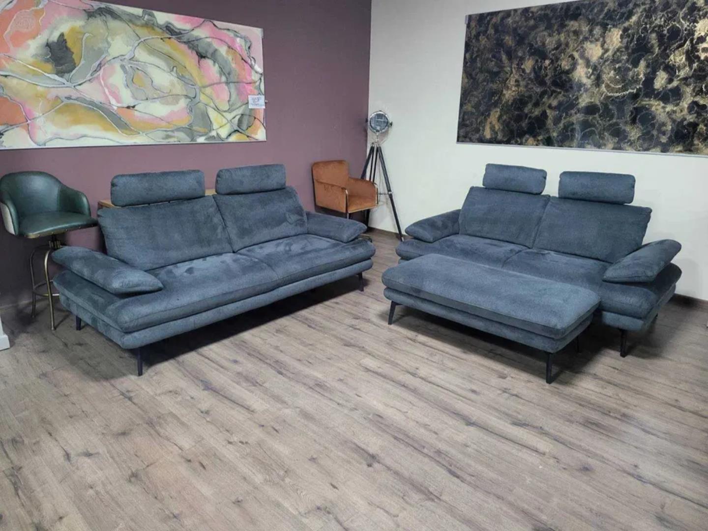 Тъмно сив комплект дивани от плат тройка, двойка и табуретка „Dieter Knoll“ с подвижни подлакътници.